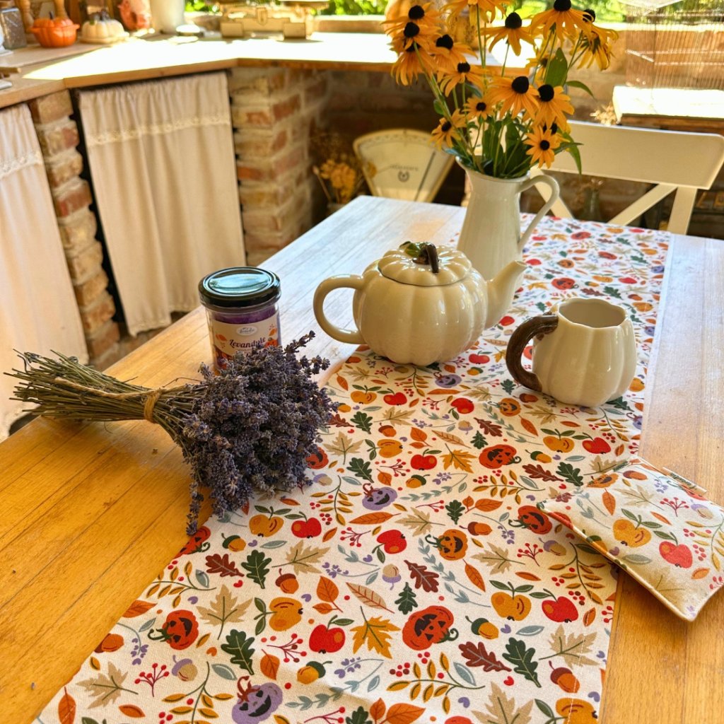 Ozdobte svůj domov originálním kouskem – běhounem na stůl z látky Lavandia, který vznikl výhradně v našem ateliéru. Autorský design s jemnými podzimními motivy navodí útulnou atmosféru a vnese do stolování hřejivý dotek přírody.