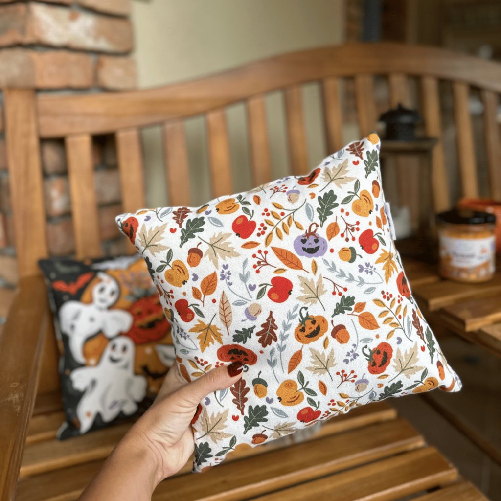 Dekorační vonný polštářek s naším novým podzimním vzorem. Plněný květem BIO levandule z našeho políčka. Unikátní design z naší dílny rozzáří každý domov a vůně levandule rozvoní celou místnost. S láskou ušitý český výrobek.