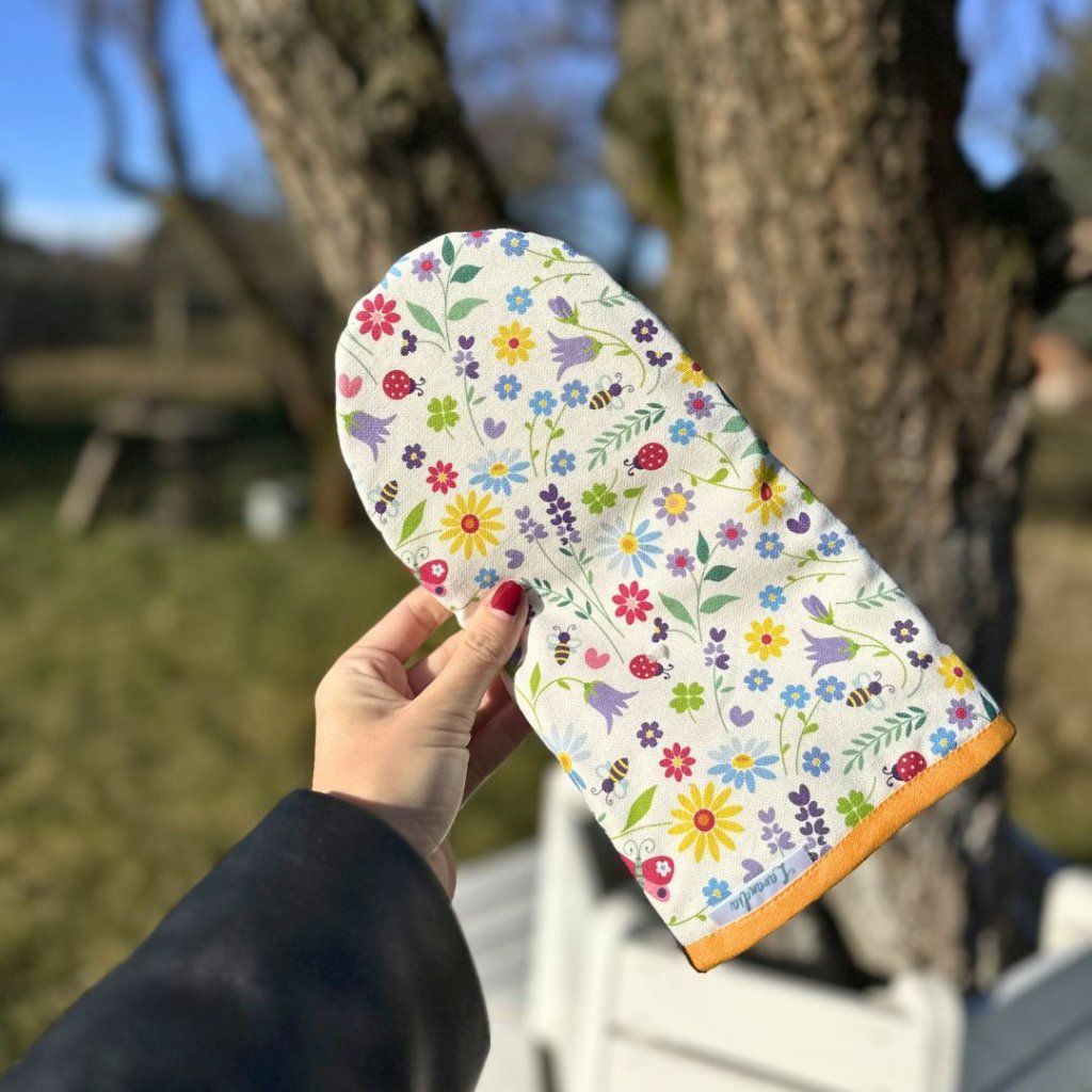 Vnitřní materiál proti spálení je několikrát prošitý aby Vám žádný horký plech, třeba s Vaší levandulovou buchtou nepopálil ruce.