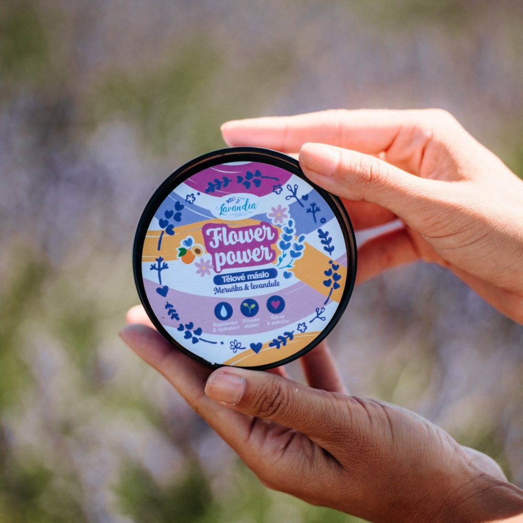 Představujeme vám tělové máslo Flower Power, dokonalou symfonii přírody určenou pro vaši pokožku. Kombinace meruňkového oleje a levandulového esenciálního oleje přináší nejen hydrataci a jemnost, ale i pocit absolutního klidu a pohody.