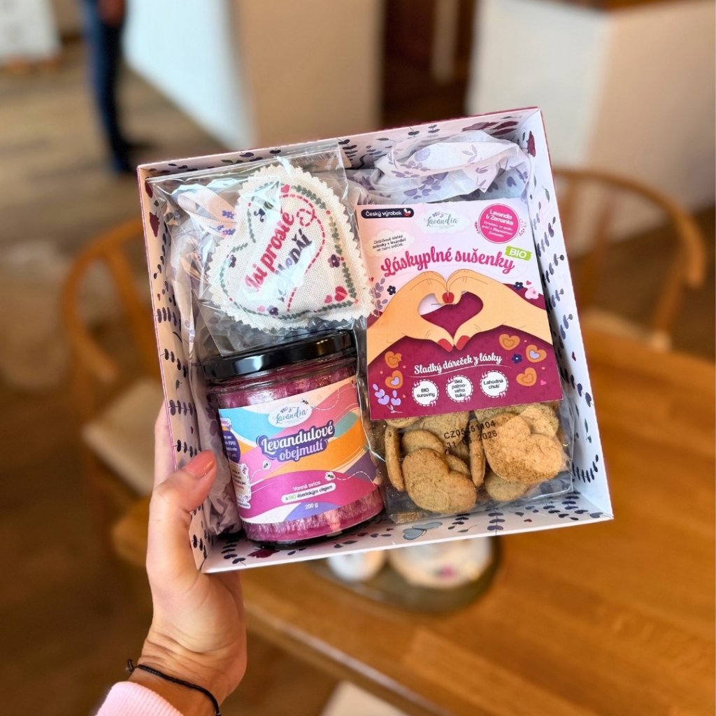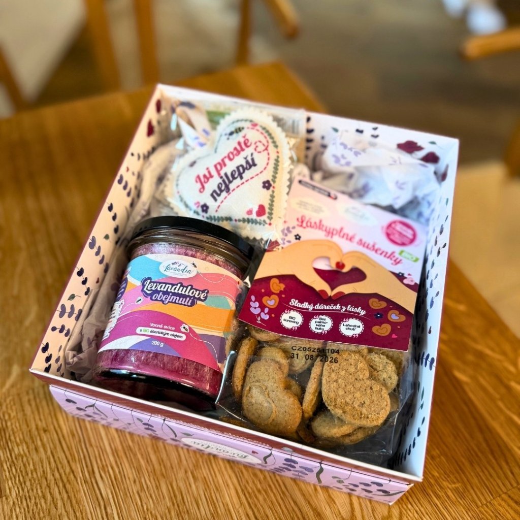 Valentýnská dárková sada - Levandulové obejmutí Pro partnerku, kamarádku nebo maminku – sladký, voňavý dárek