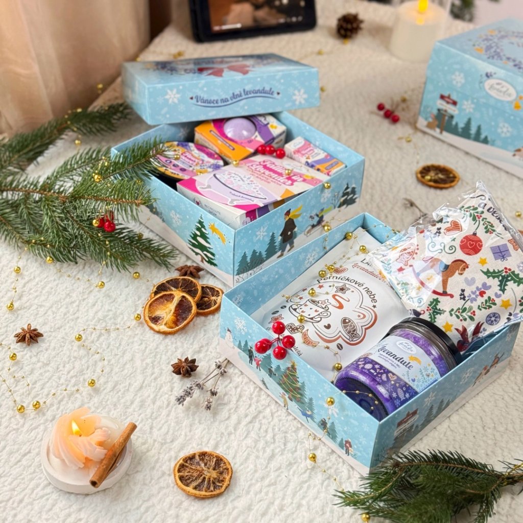 Vyberte si své oblíbené levandulové poklady, přidejte do košíku tuhle elegantní krabičku s jemným hedvábným papírem – a během chvilky vytvoříte dárek, který voní klidem, péčí a kouzlem Vánoc. 💜