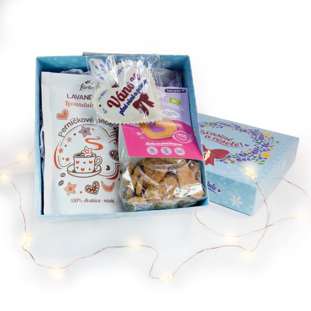 V setu najdete naši výběrovou levandulovou kávu ze spolupráce z pražírnou Coffeespot, vonné srdíčko a křehké levandulové BIO sušenky. Celou sadu Vám zabalí naše šikovné děvčata do dárkové krabičky a hedvábného fialového papíru.
