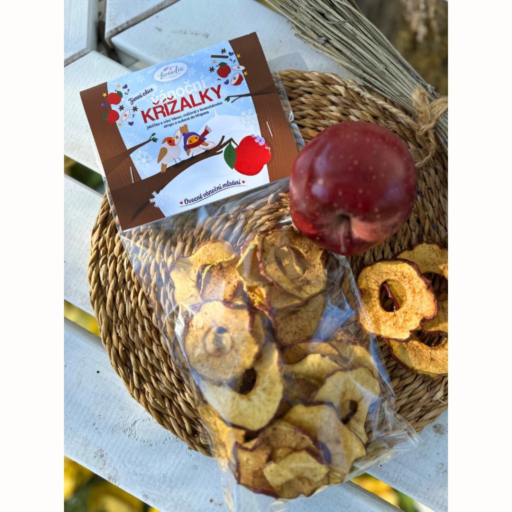Vánoční křížalky BIO - ovocná svačinka Jablíčka z našeho sadu, máčená v levanduli