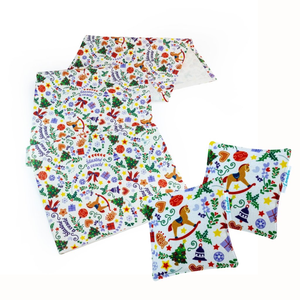 Naše vánoční sada Lavandia – běhoun a dva podšálky – to je jak když si doma rozsvítíte kousek moravských Vánoc. Všechno spolu ladí, všecko šité srdcem, a u stolu hned zavoní pohoda.