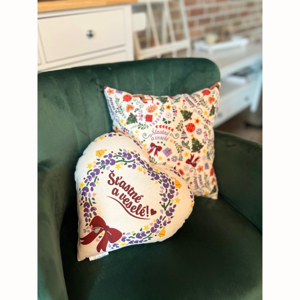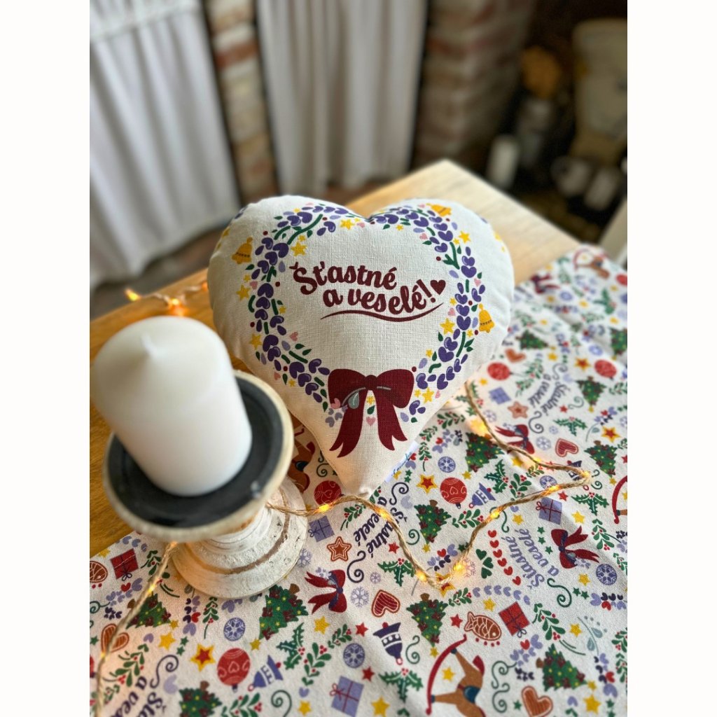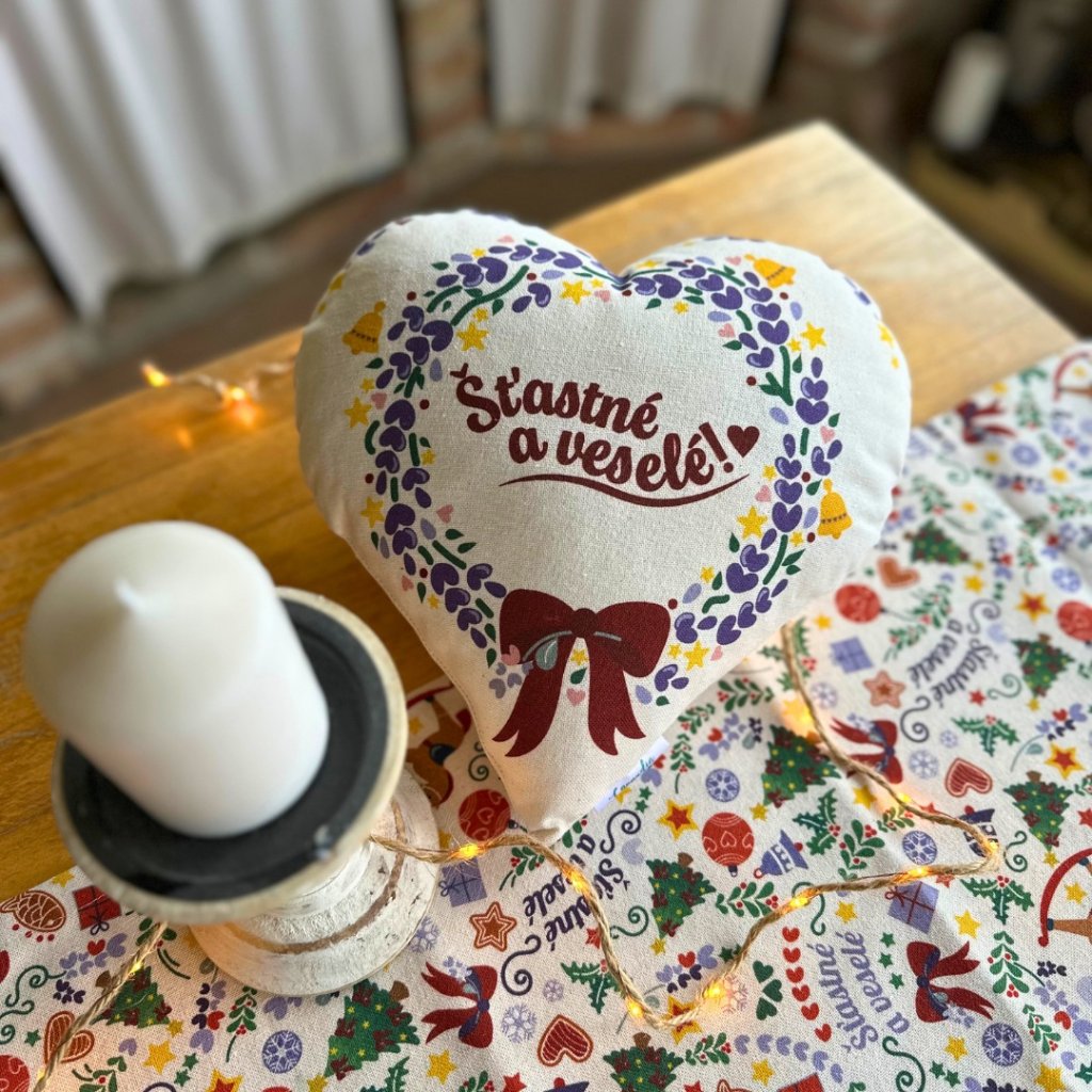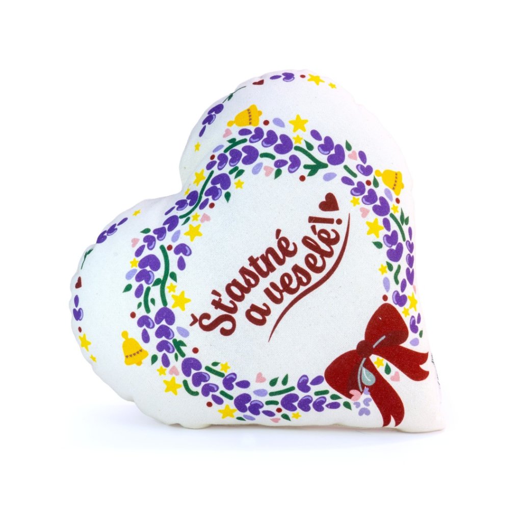 Vánoční vonný polštář - Šťastné a veselé tvar srdce s BIO levandulí